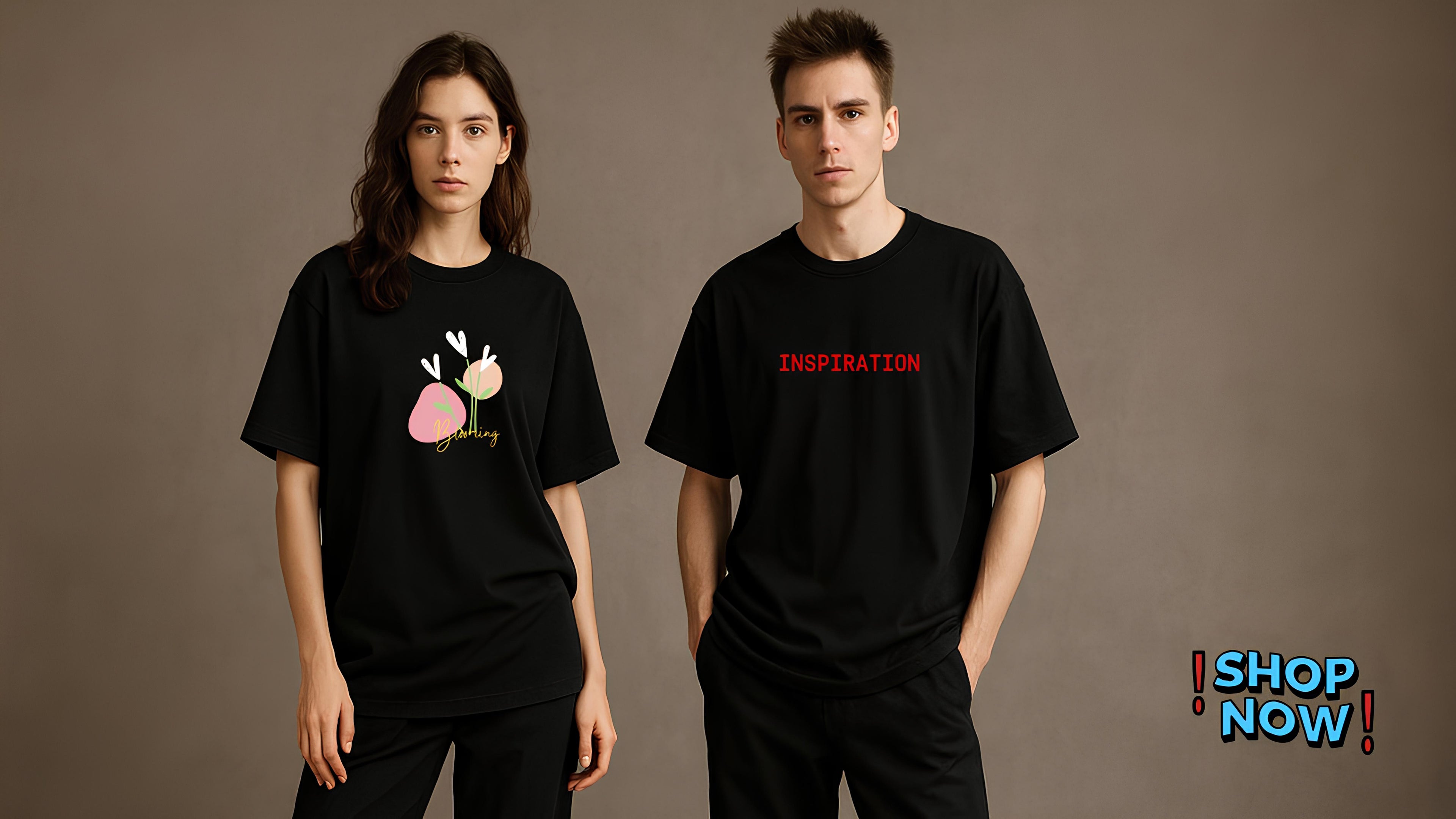 Black : Round Neck Drop Sleeved Tee For Men and Women